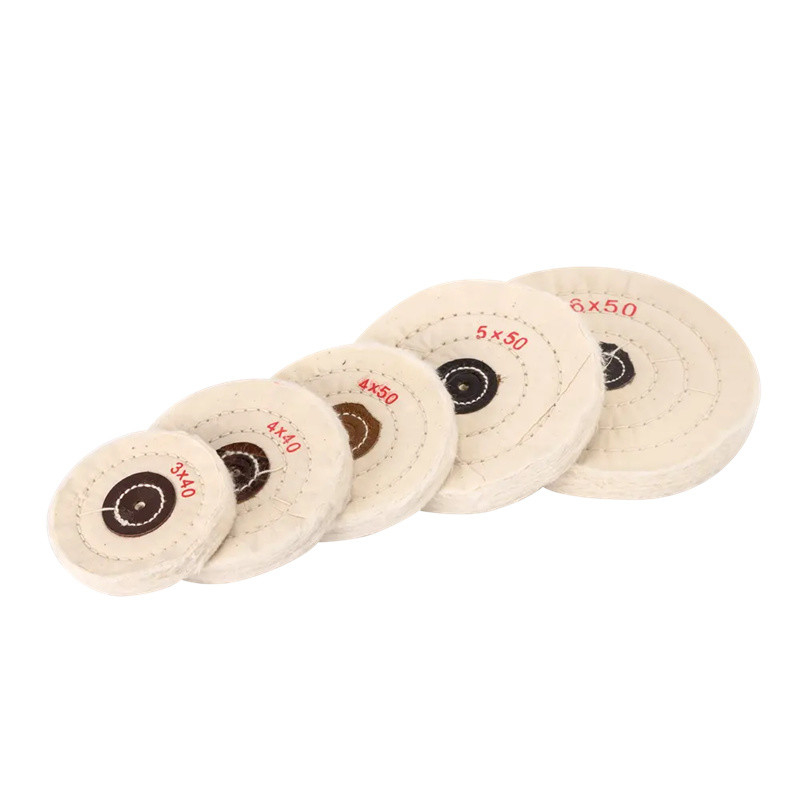 Dengan kain katun multilayer yang ditumpuk bersama dan dijahit dengan bentuk spiral. Kain katun dibuat dari benang katun murni dengan benang dan kepadatan yang berbeda. Cocok untuk semua jenis penggilingan dan pemolesan permukaan produk logam & non-logam. Misalnya, baja tahan karat, aluminium, bingkai kacamata, plastik, kayu.